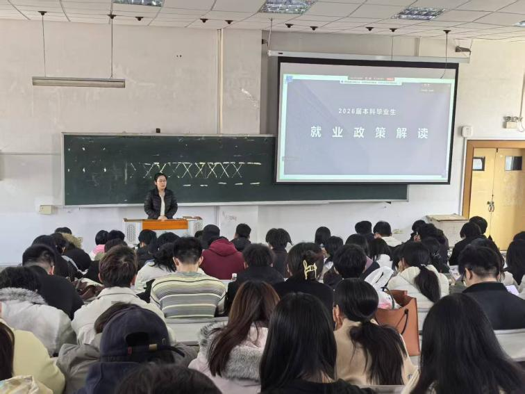 为扎实推进2026届本科毕业生各项工作,强化就业政策引导,筑牢校园安全防线,4月10日,花都影视 在实验楼综阶3教室召开2026届本科毕业生年级大会暨就业政策解读会。本次会议采用线上线下相结合的方式,会议由毕业班辅导员李明静主持,全体本科毕业生参会。